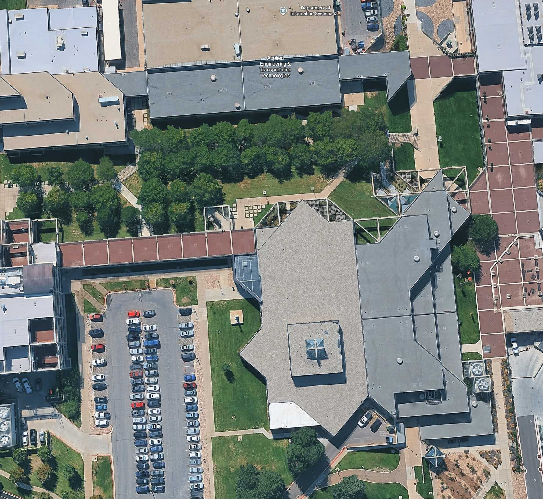 According to charging documents, the suspect "jumped down from a publicly accessible walkway onto the roof" it looks like the only place that would be possible would be from this parking garage to this red area in the middle of the screen. I'm not sure if it's a walkway, but it is at the same level as the roof. I'm not sure if you're still in the area, but if you could take note of any cameras in the area that would see someone making that path onto the roof, that would be great.